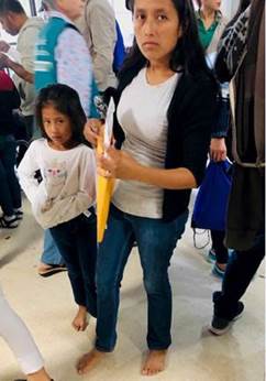This is a lady I met when I went to the respite Center in McAllen. She is with her daughter; her husband was killed in Honduras. Her shoes and her daughter’s shoes gone and obviously she felt embarrassed by it when someone asked her why she had no shoes. We could not get her any shoes that day.