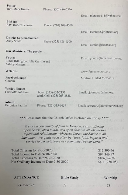 May God bless you and yours abundantly!! Mark Krause 1st UMC Mertzon 105 W Juanita Ave P. O. Box 583 Mertzon, TX. 76941 325-315-6659 Cell 830-486-6526