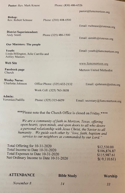 May God bless you and yours abundantly!! Mark Krause 1st UMC Mertzon 105 W Juanita Ave P. O. Box 583 Mertzon, TX. 76941 325-315-6659 Cell 830-486-6526