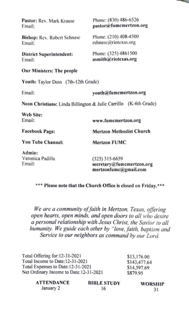 May God bless you and yours abundantly!! Mark Krause 1st UMC Mertzon 105 W Juanita Ave P. O. Box 583 Mertzon, TX. 76941 325-315-6659 Cell 830-486-6526