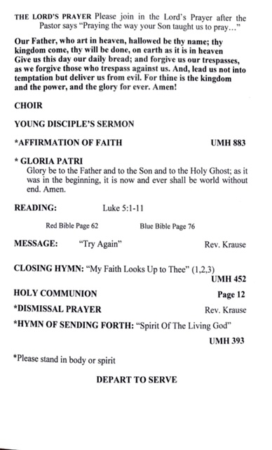 - Sunday’s bulletin, (continued)