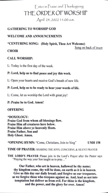 - Sunday’s bulletin Mark Krause, April 28 2022