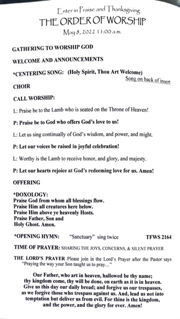 - Sunday’s bulletin Mark Krause, May 12 2022