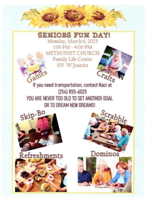 We will have fun day on the first and third Monday of each month. May God bless you and yours abundantly!! Rev Mark Krause 1st UMC Mertzon 105 W Juanita Ave P. O. Box 583 Mertzon, TX. 76941 www.fumcmertzon.org 325-315-6659 Cell 830-486-6526